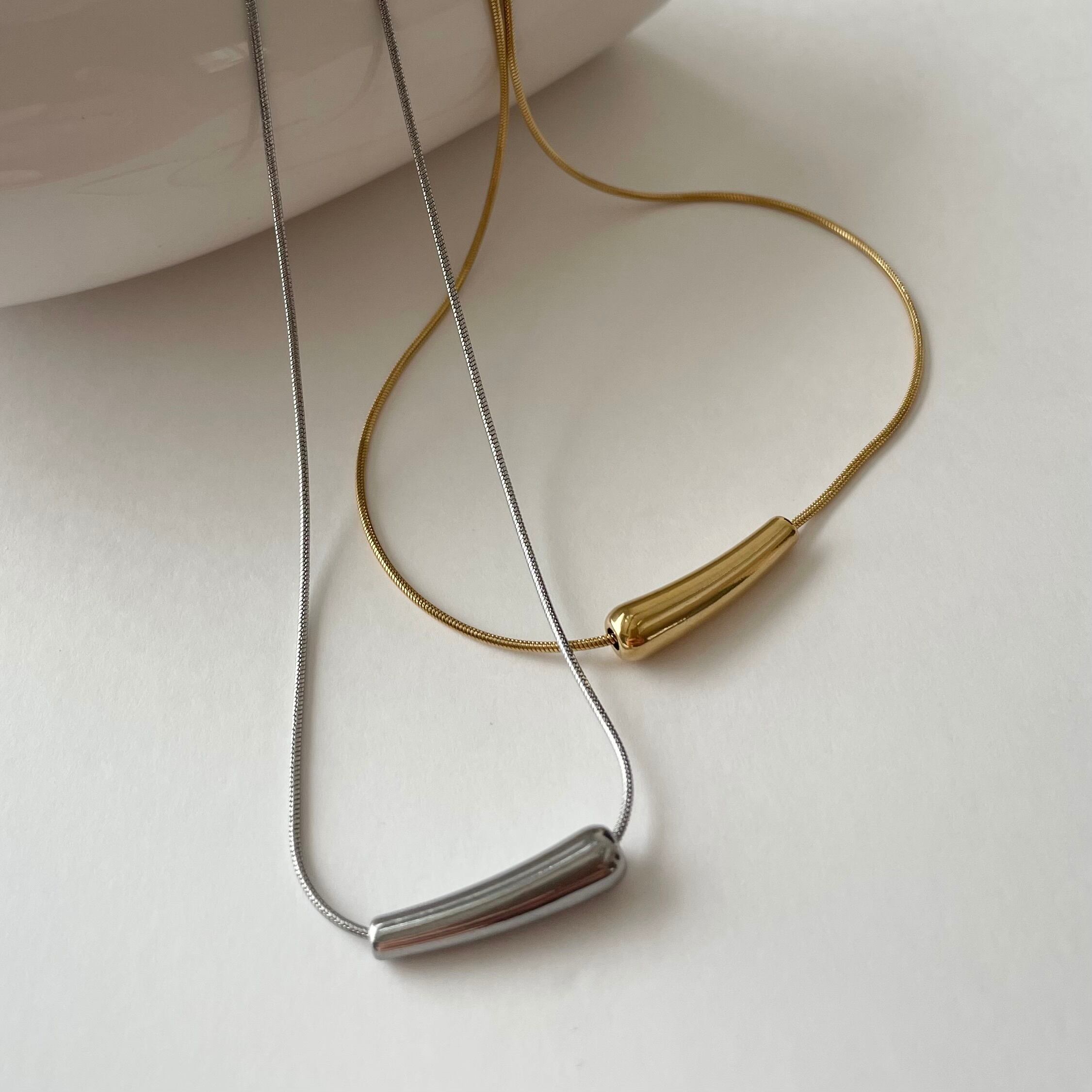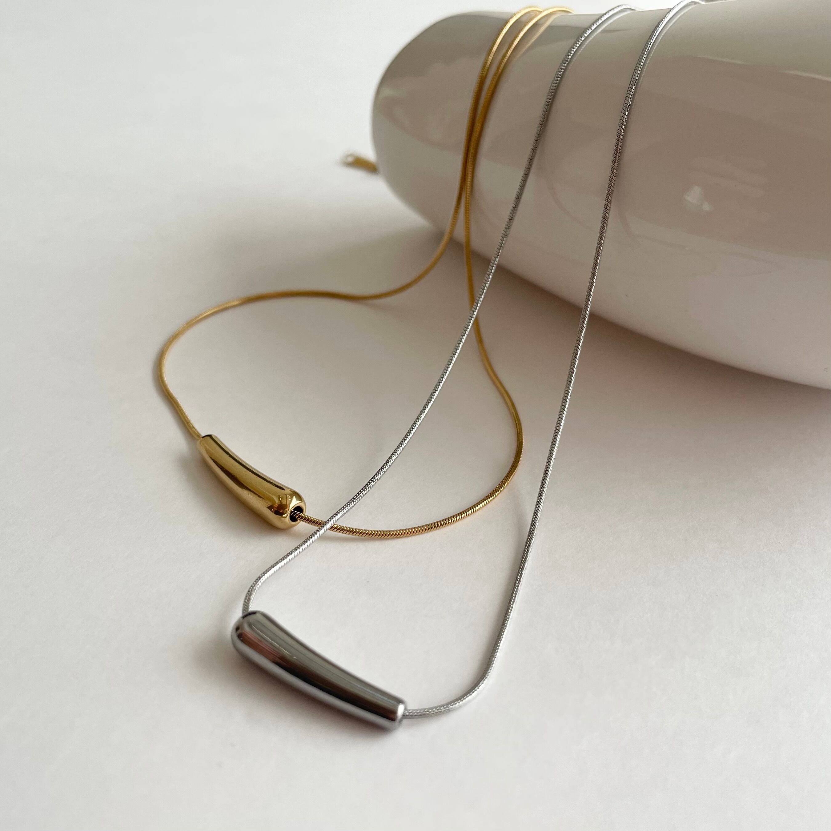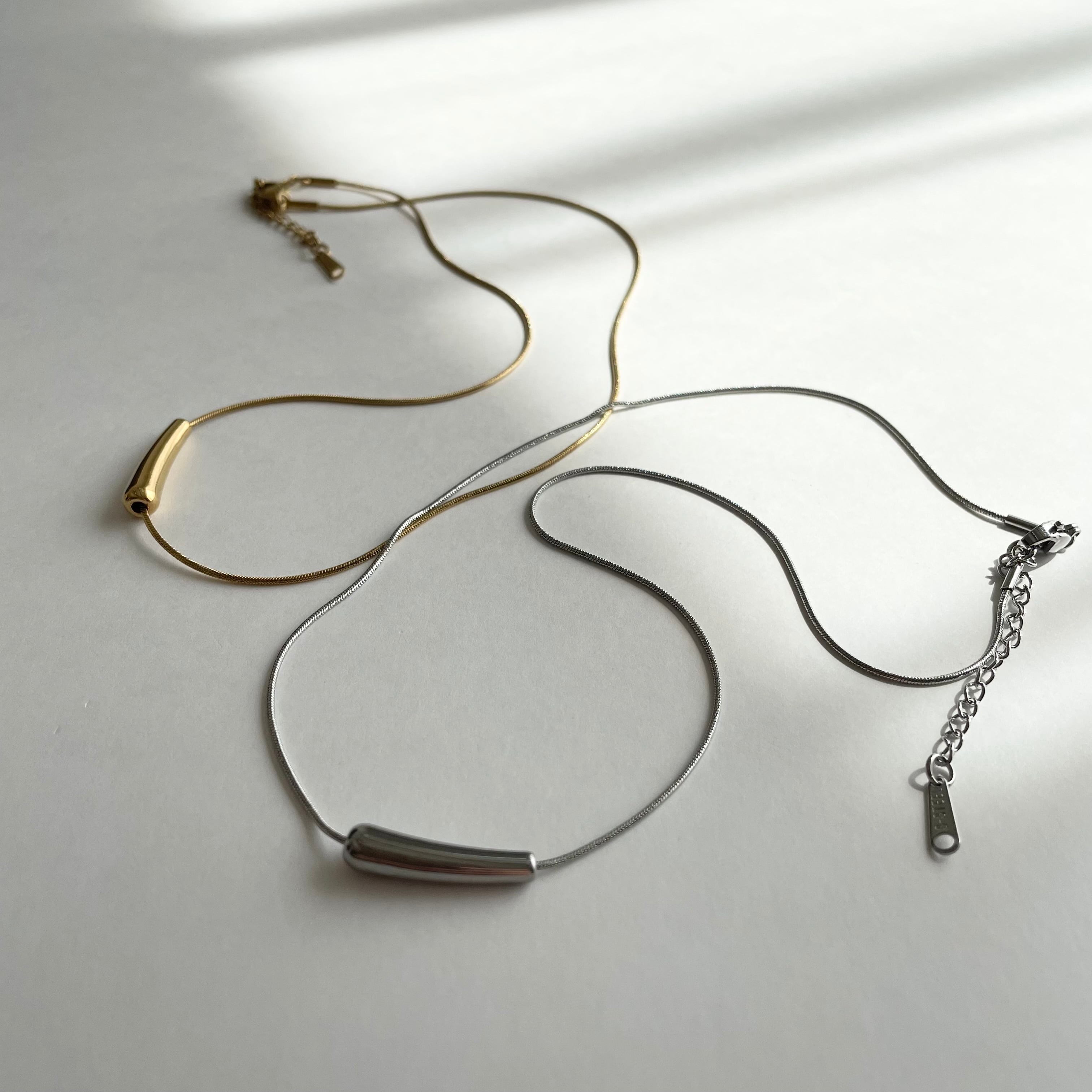 とろみのあるチェーンで肌に溶け込むシンプルネックレス。