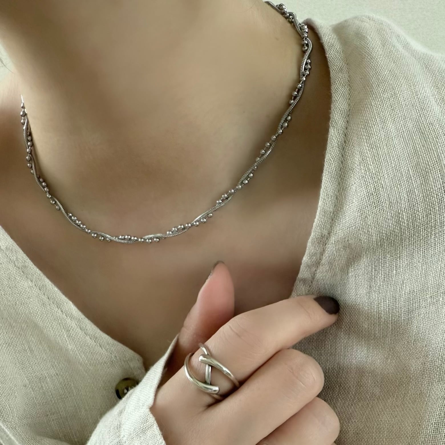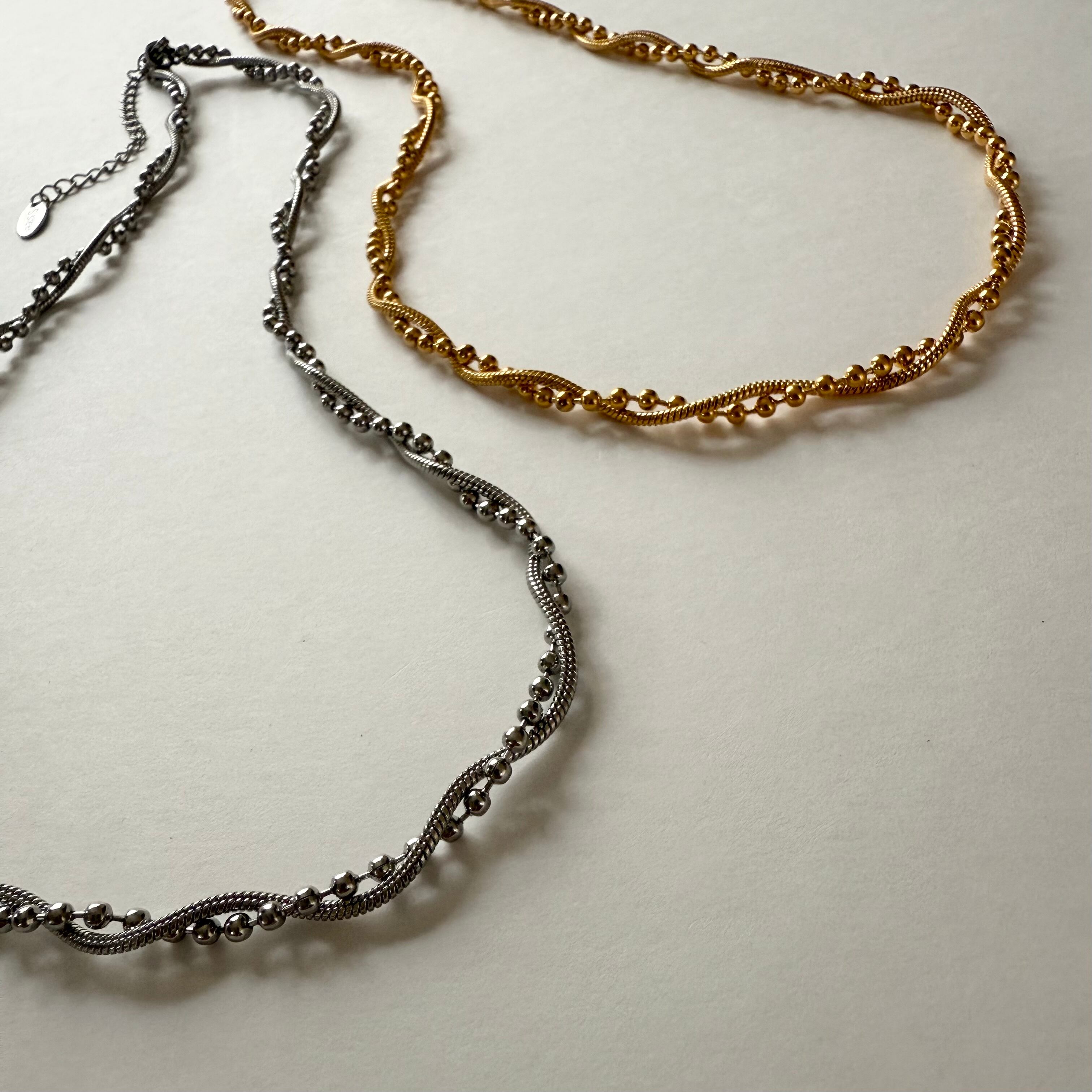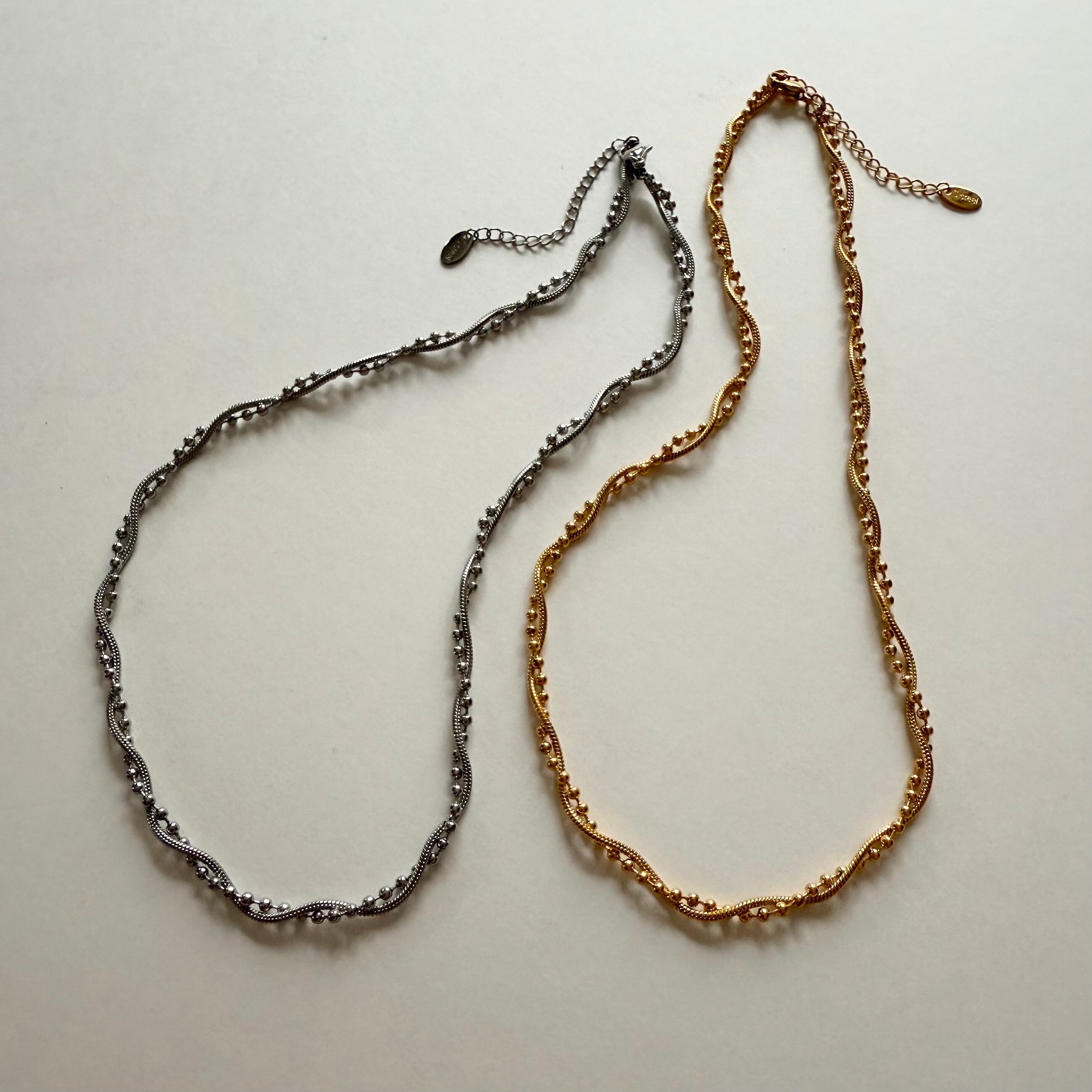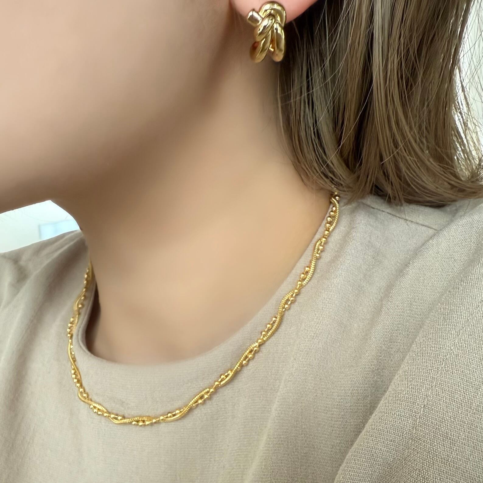 2種類のチェーンを使ったデザインが被らないおしゃれな首元に。