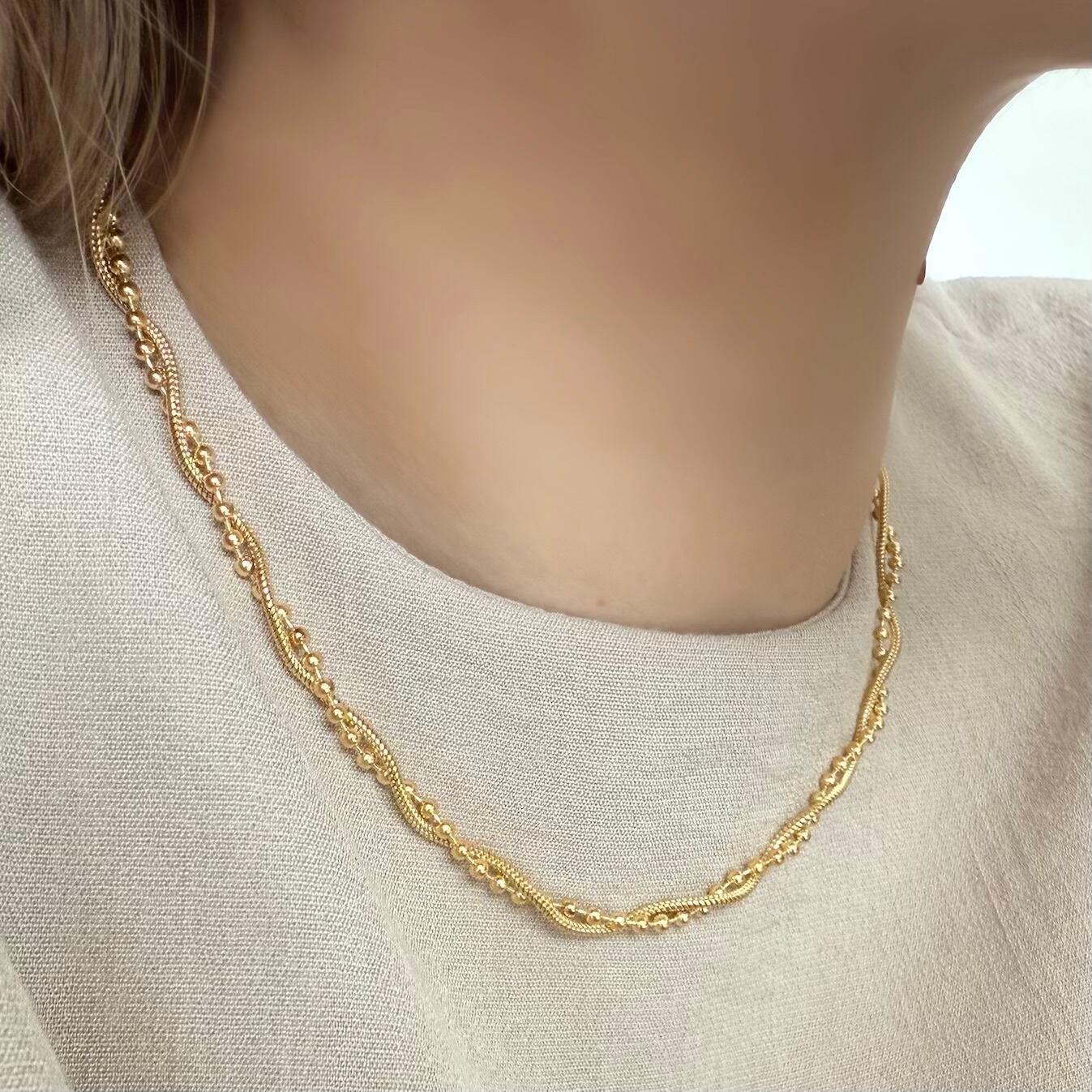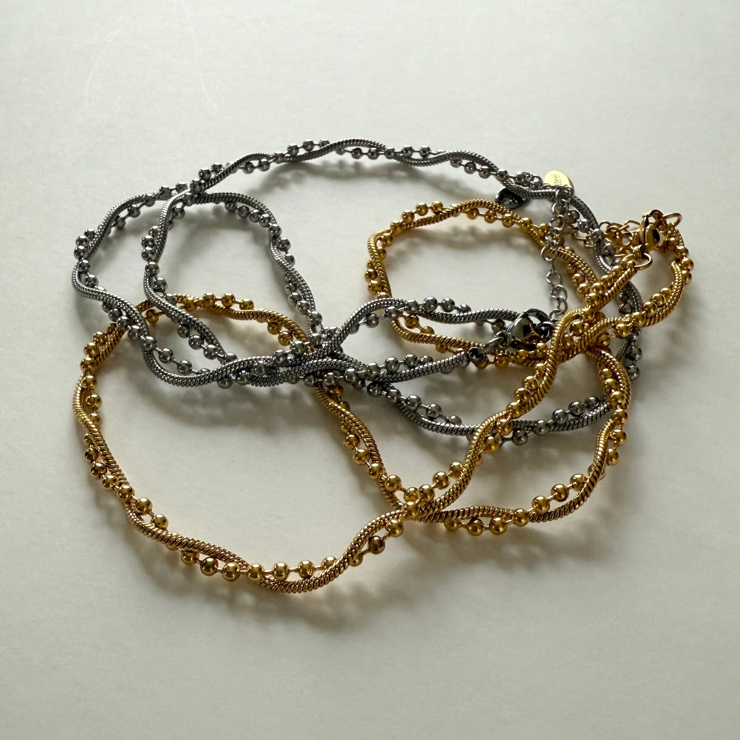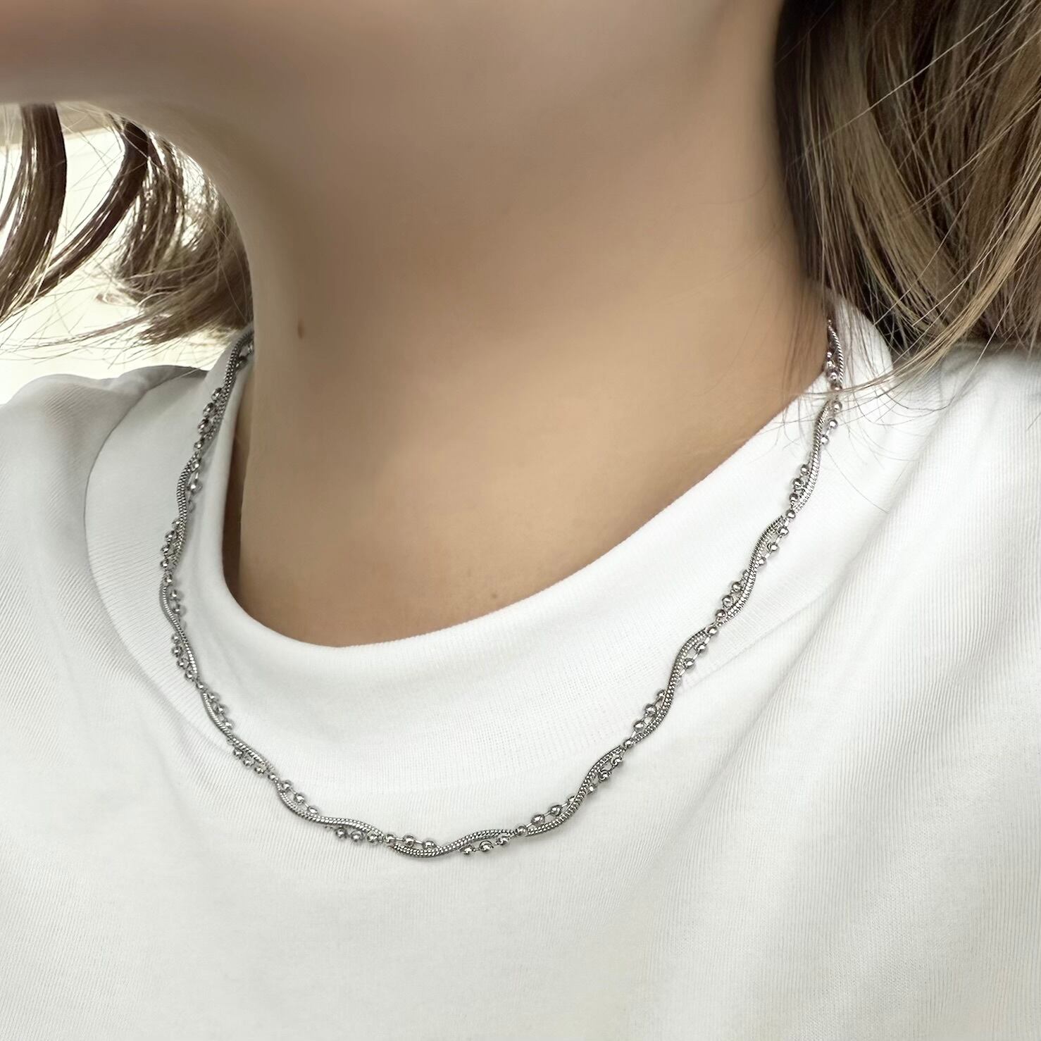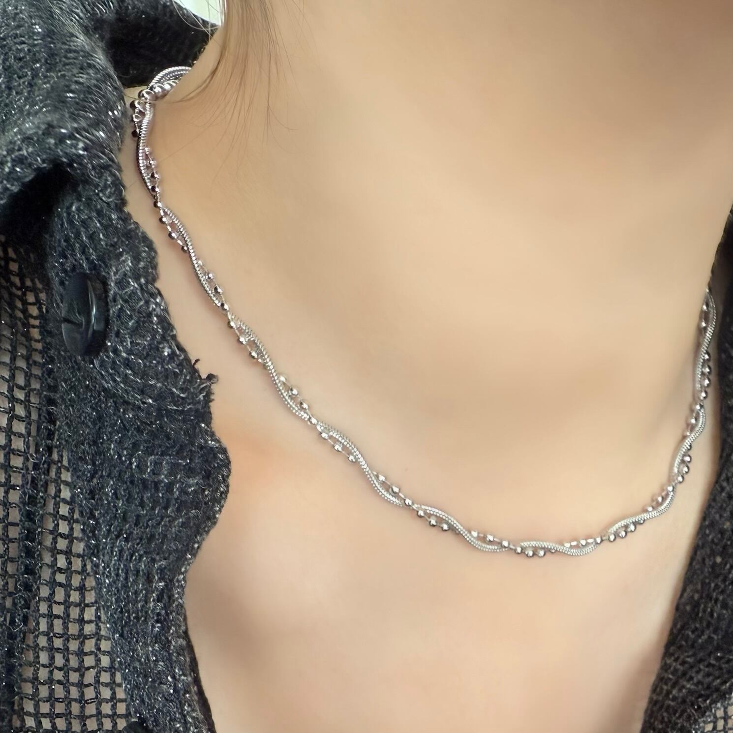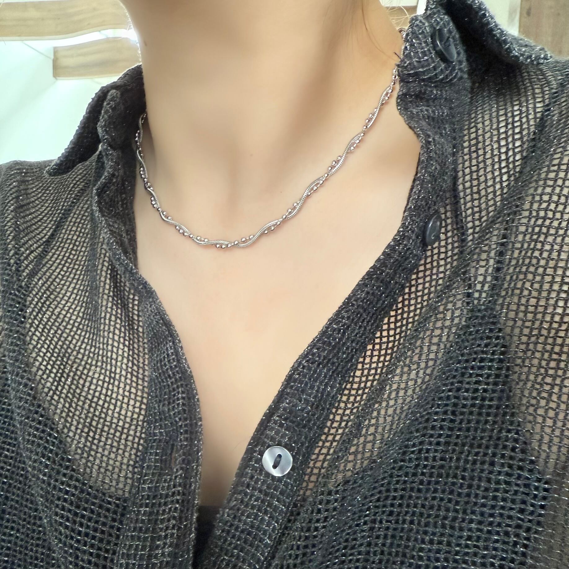 2種類のチェーンを使ったデザインが被らないおしゃれな首元に。