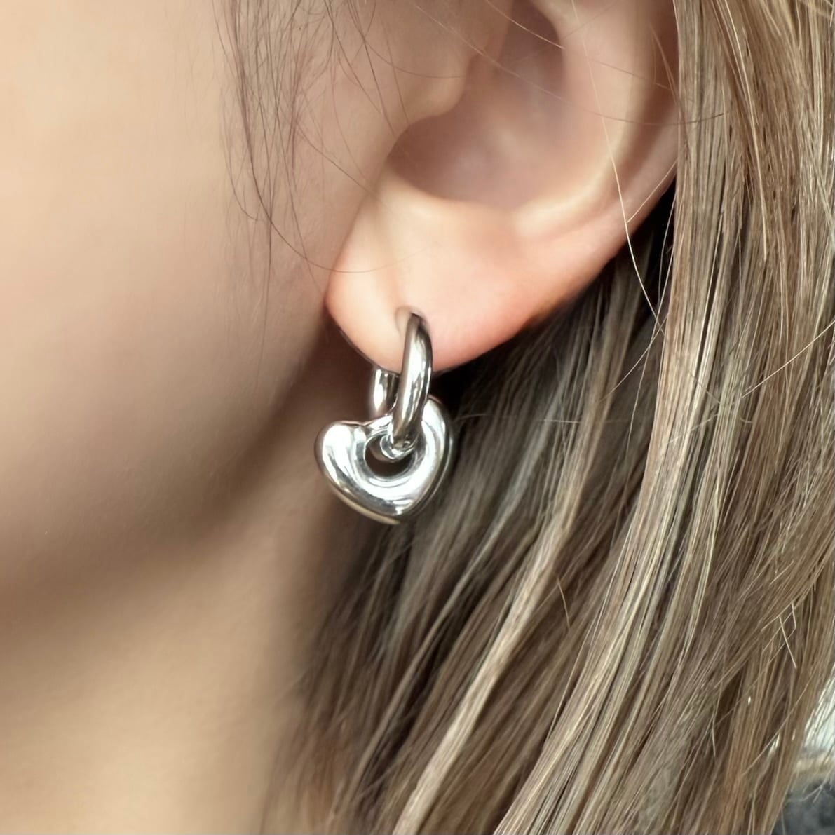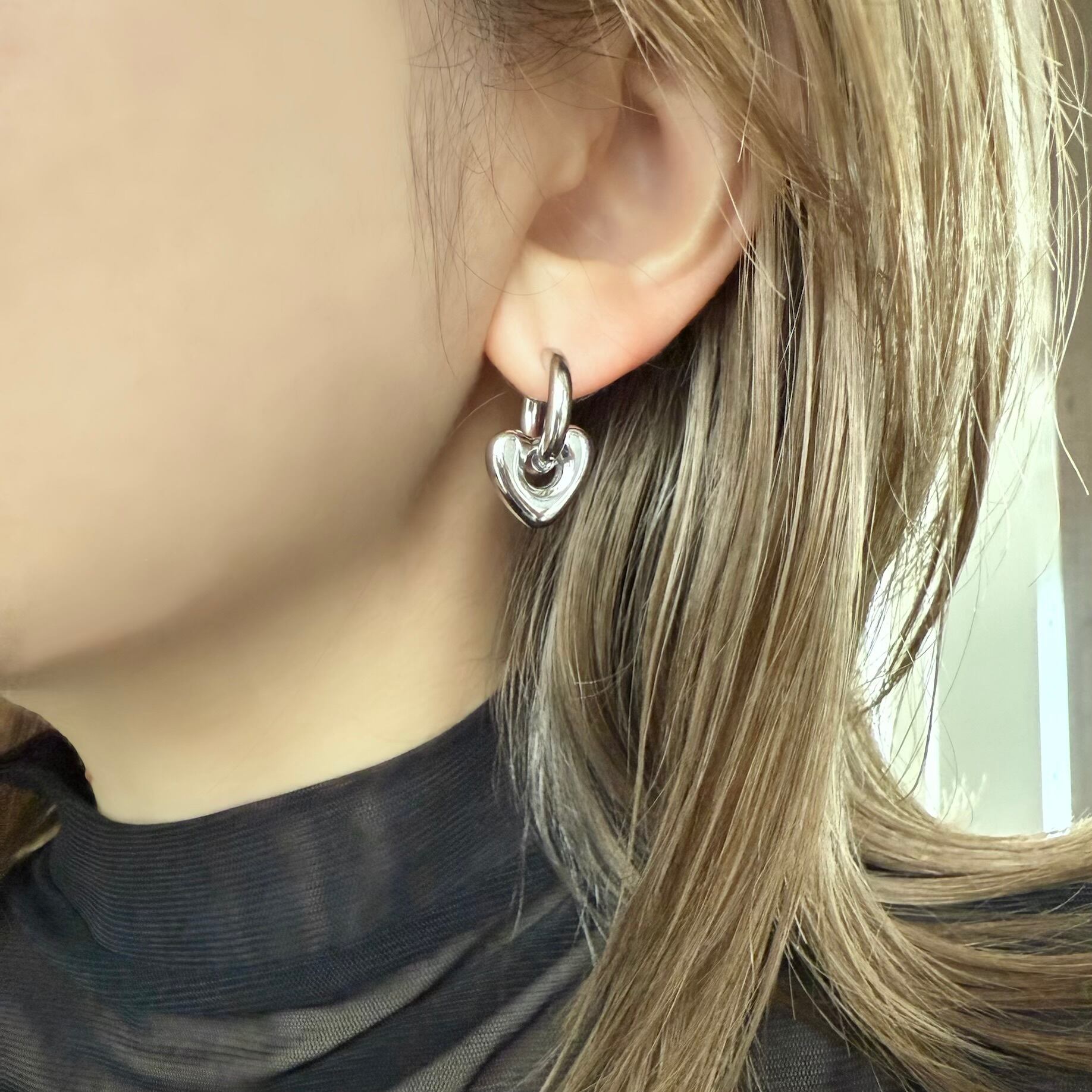 大人可愛いハートフープピアス。