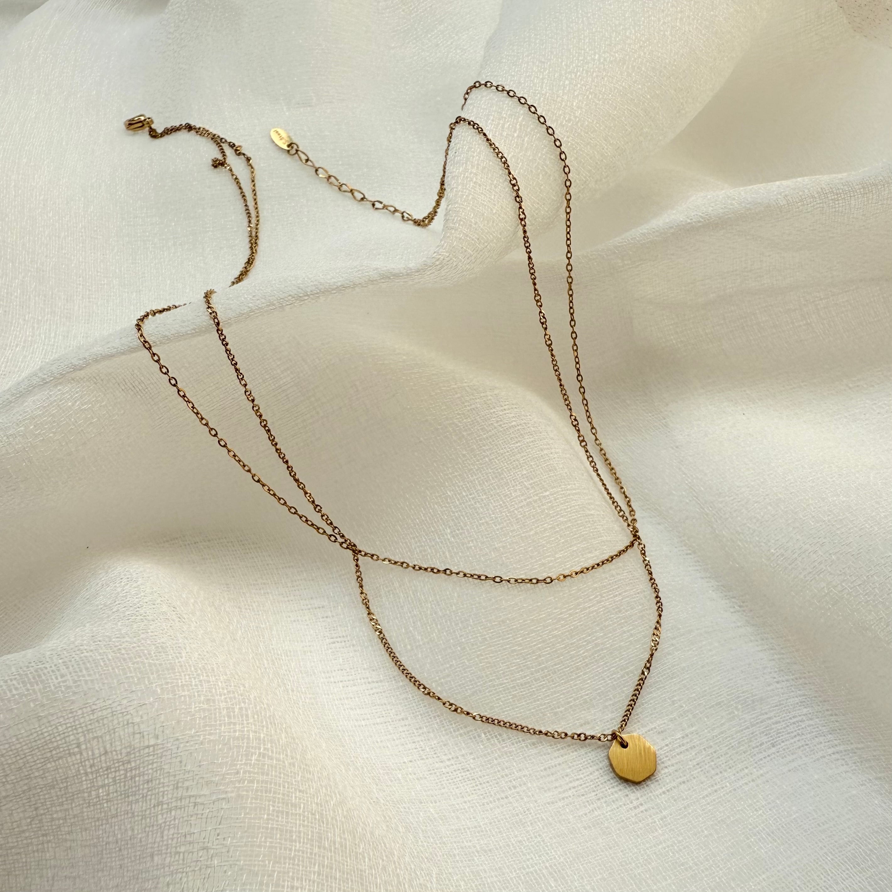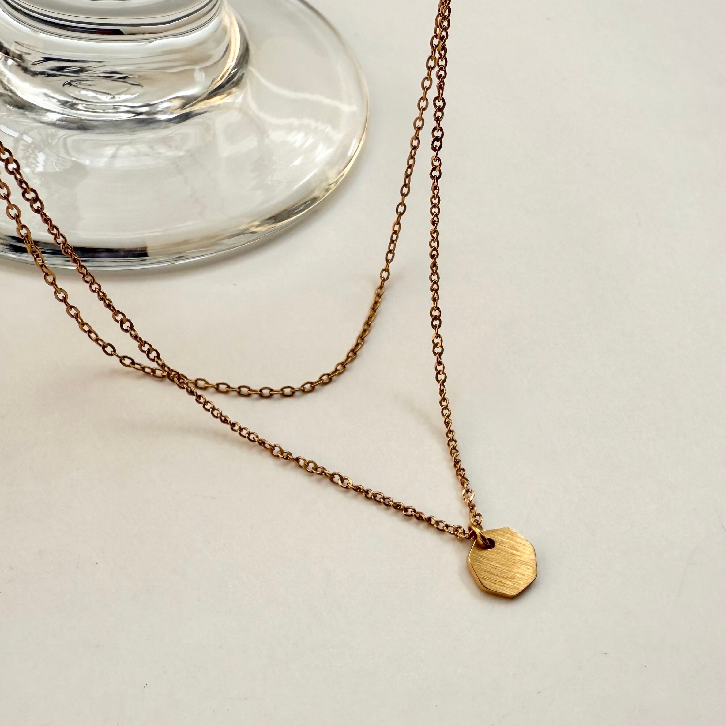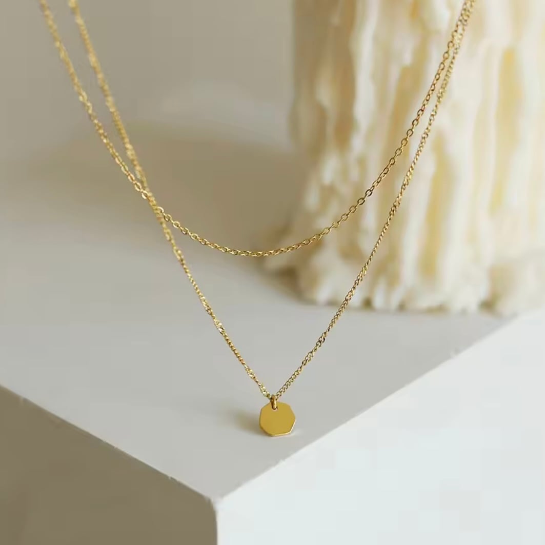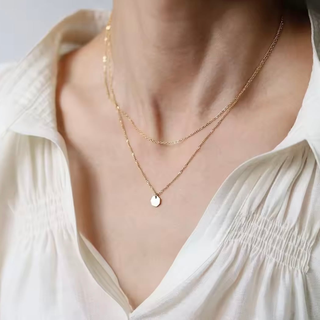 スタイリッシュなダブルチェーンゴールドネックレス。