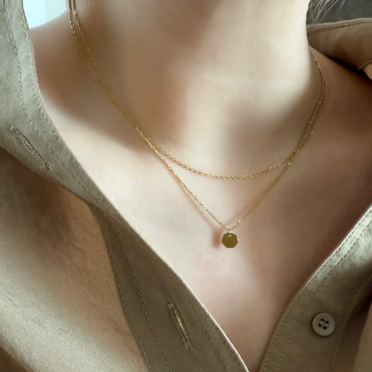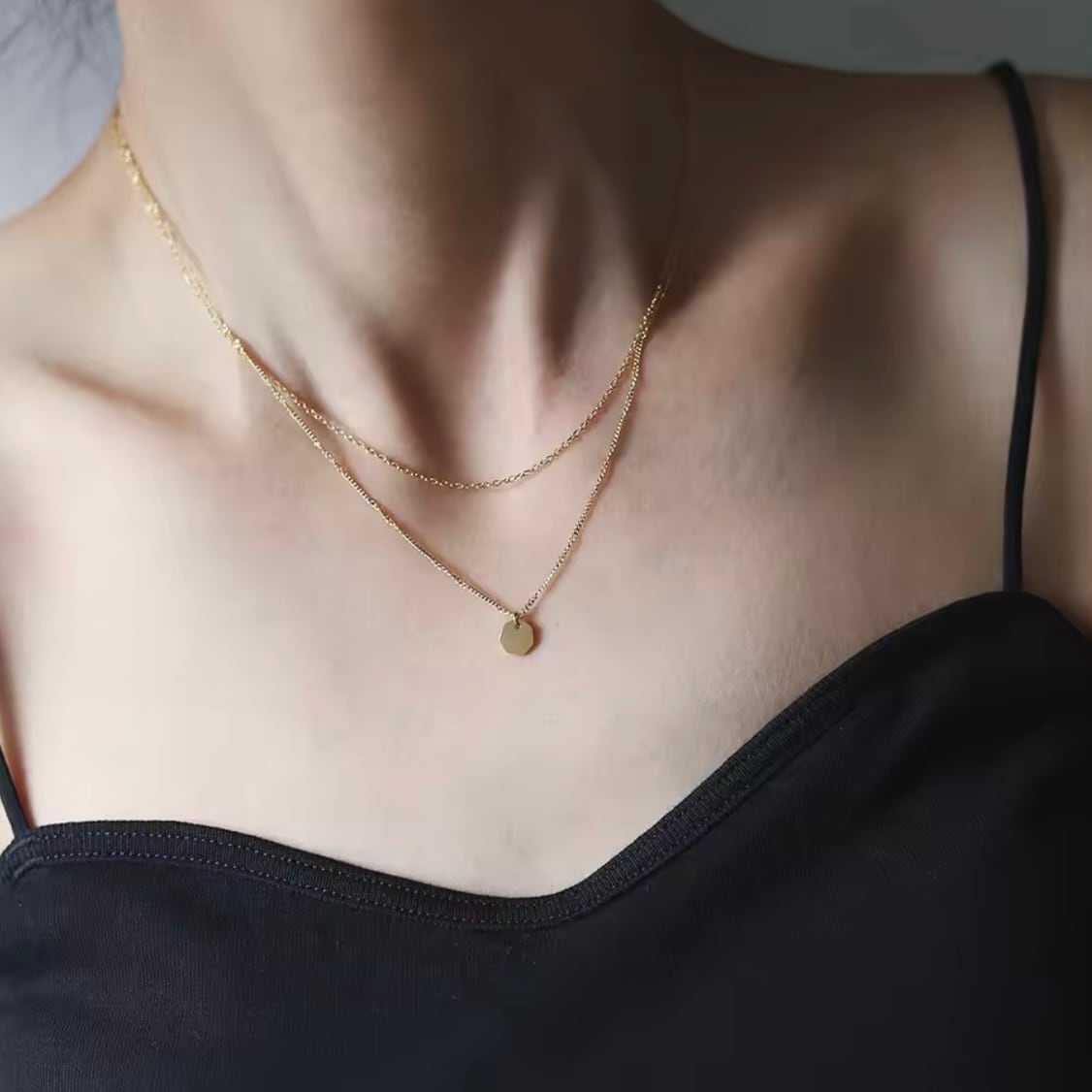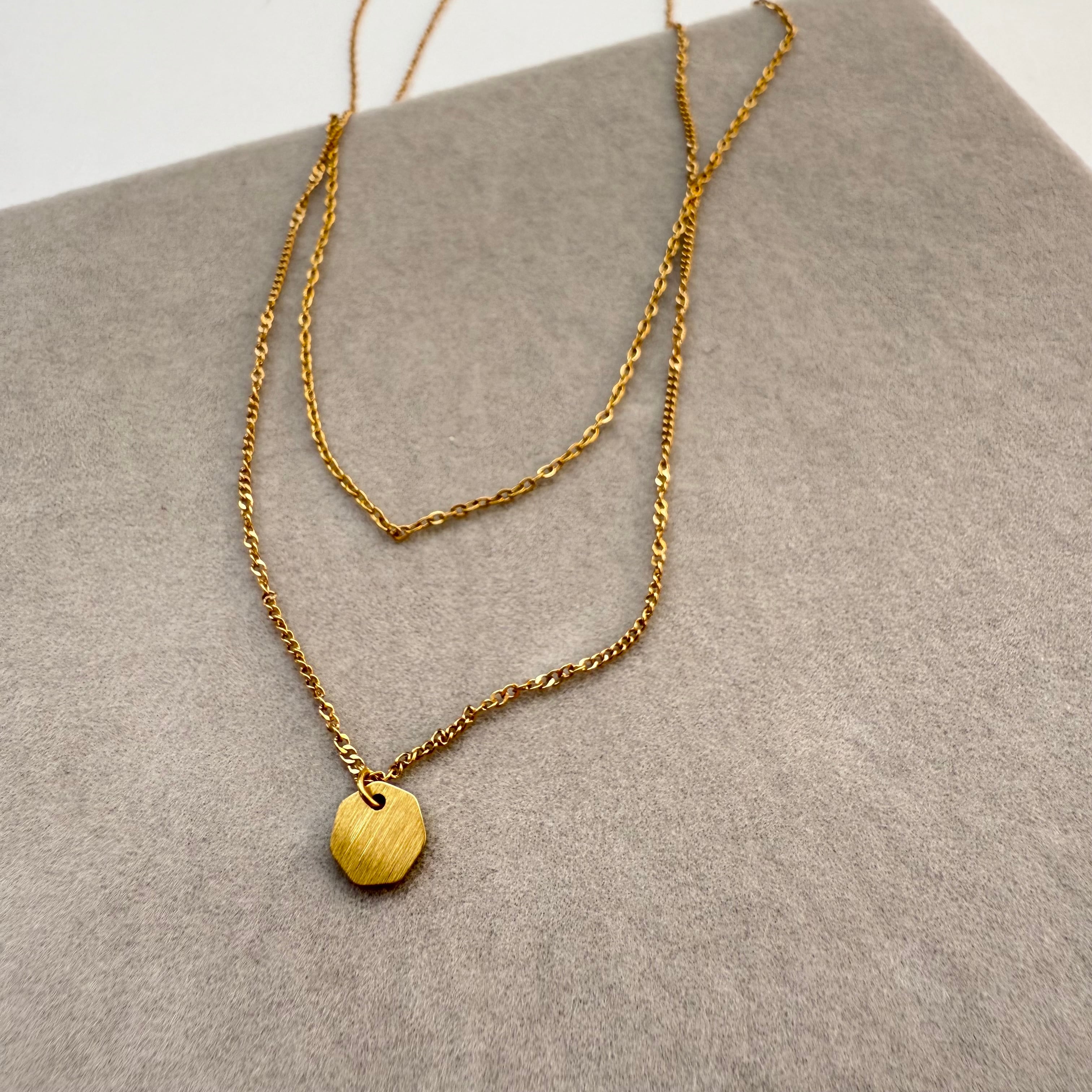 スタイリッシュなダブルチェーンゴールドネックレス。