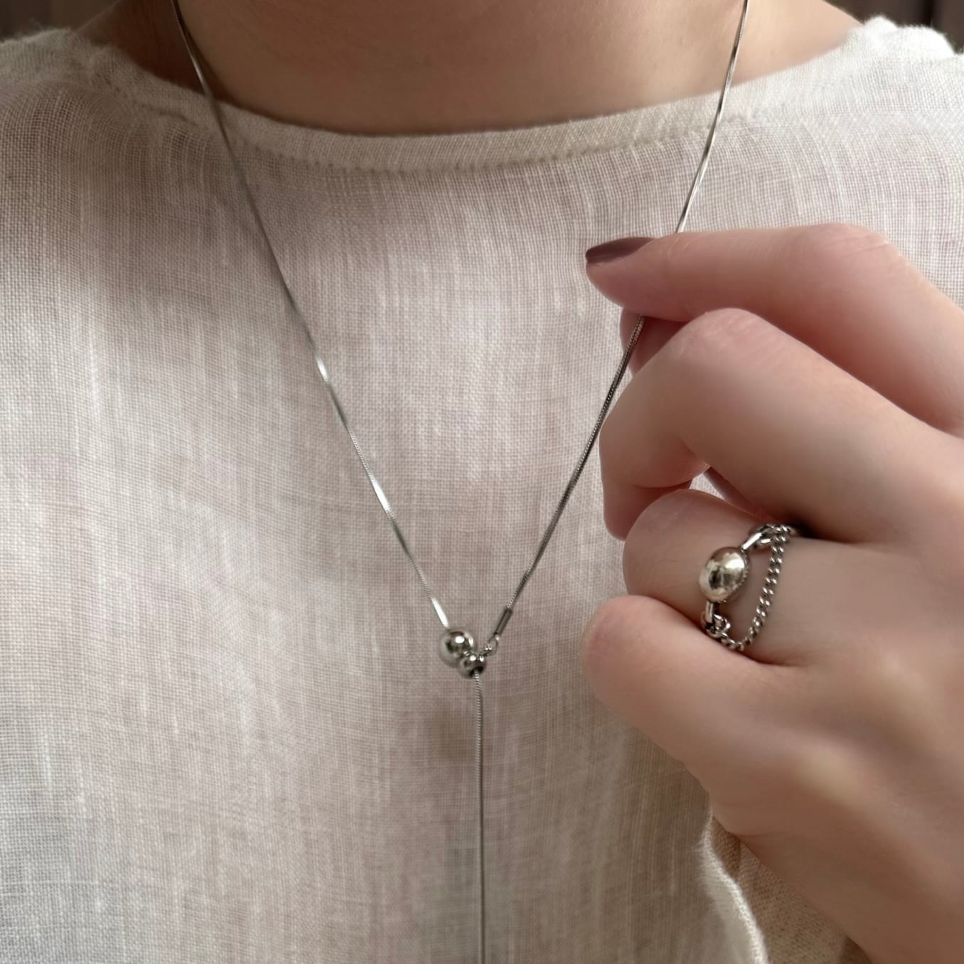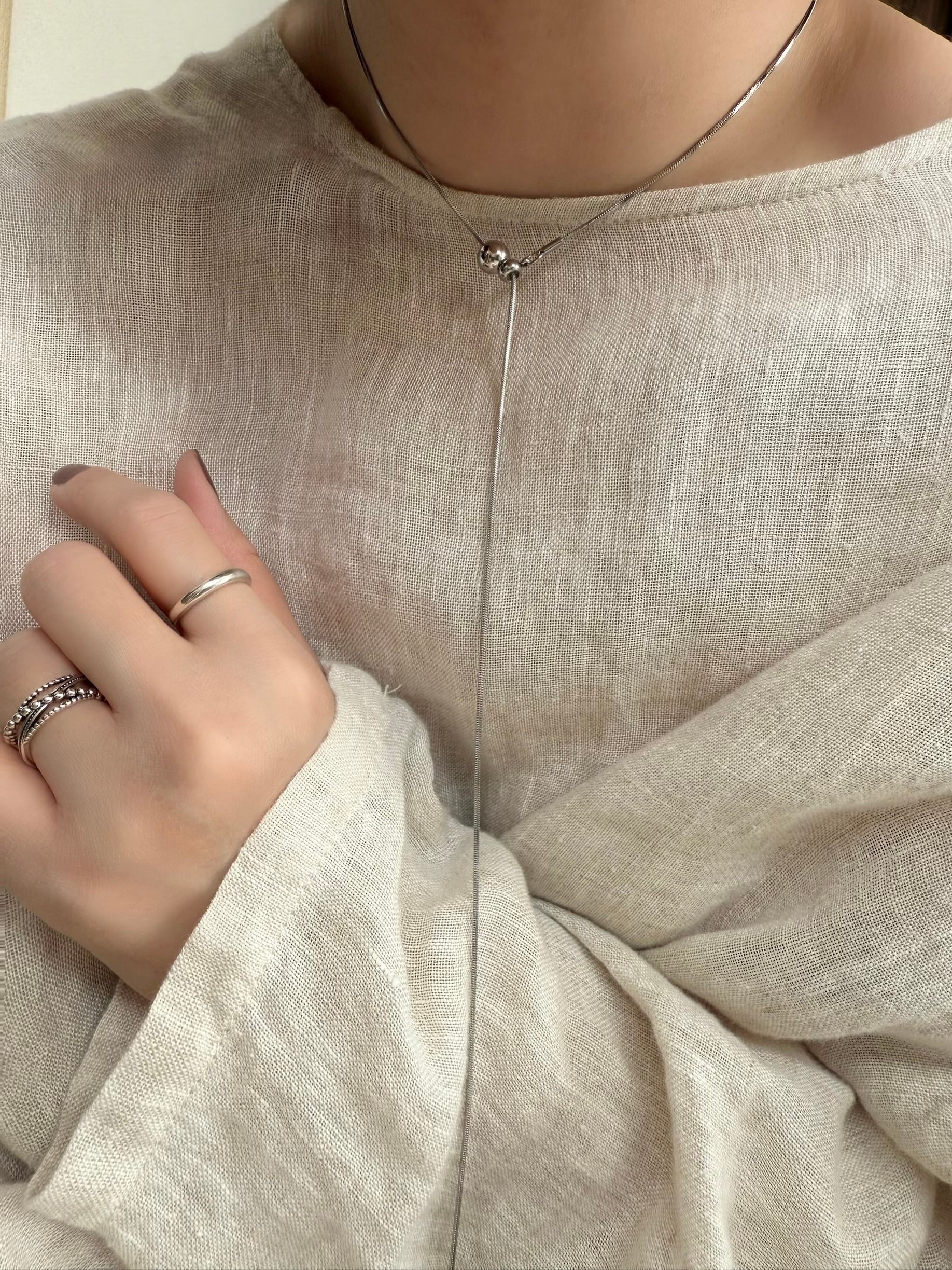 とろみのあるスネークチェーンのスライド式のネックレス。