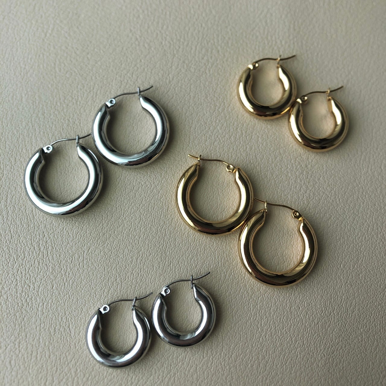 コロンとしたフォルムが可愛いチャンキーフープピアス