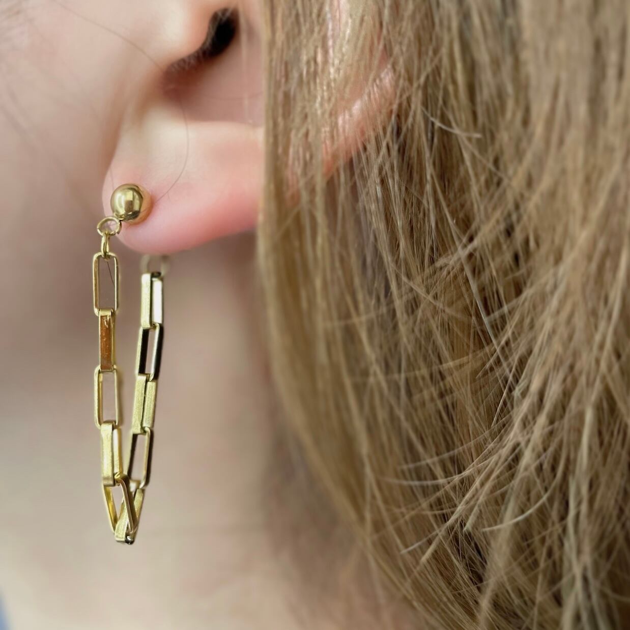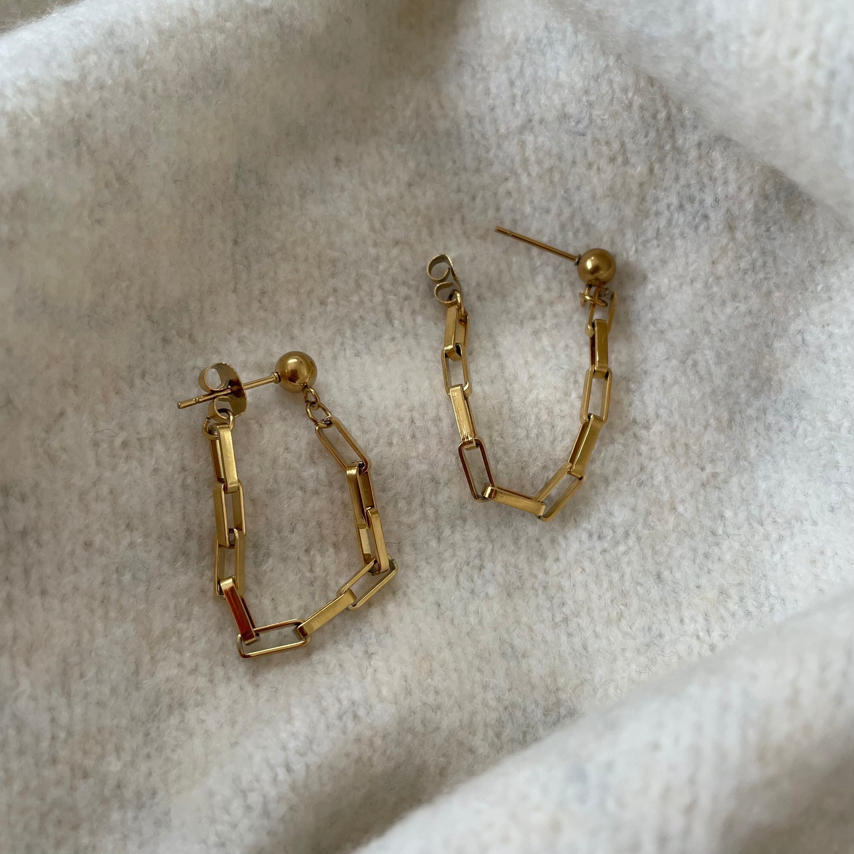 女性らしいラインのチェーンピアス
