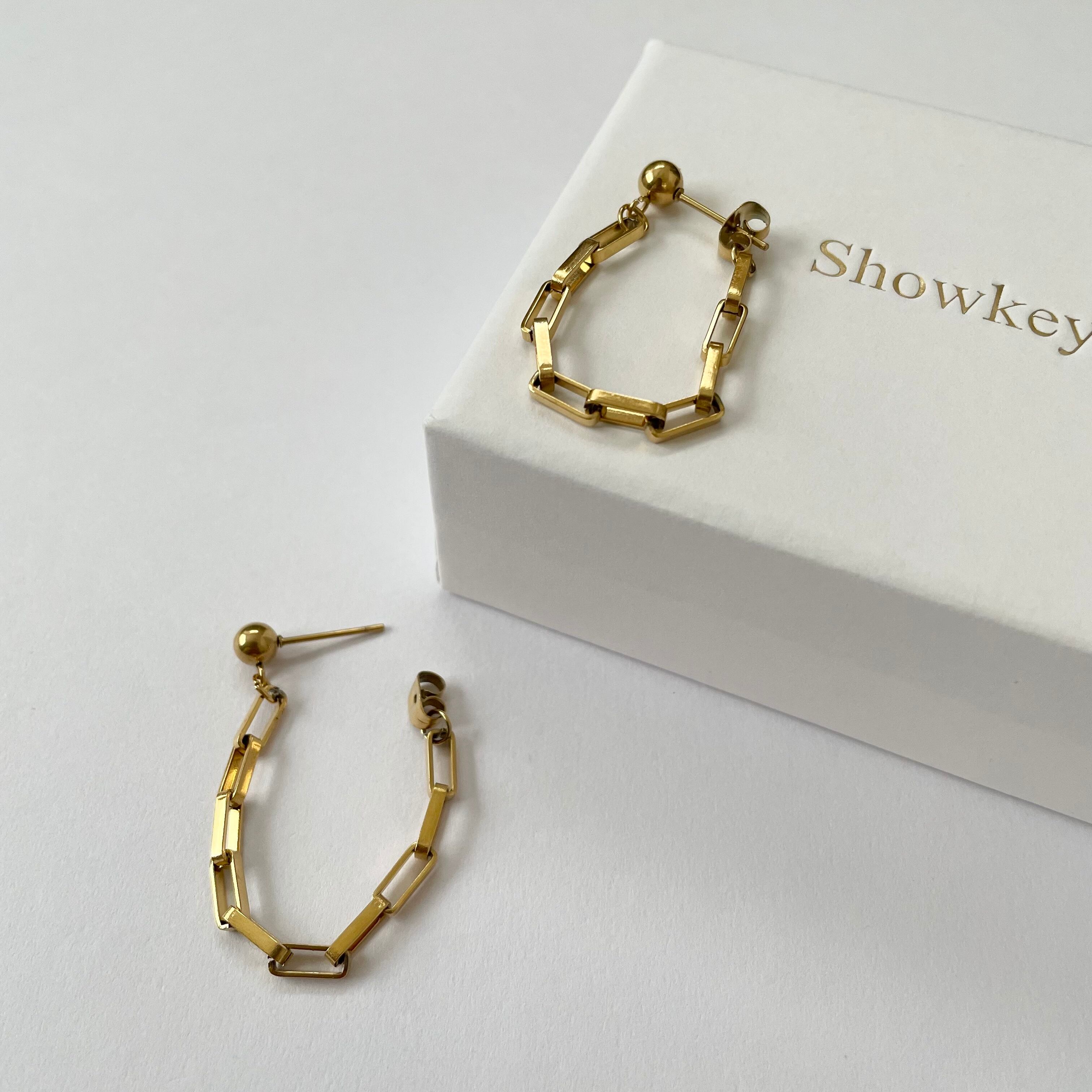 上品なデザインで動くたびチェーンが輝き耳元を華やかにしてくれます。