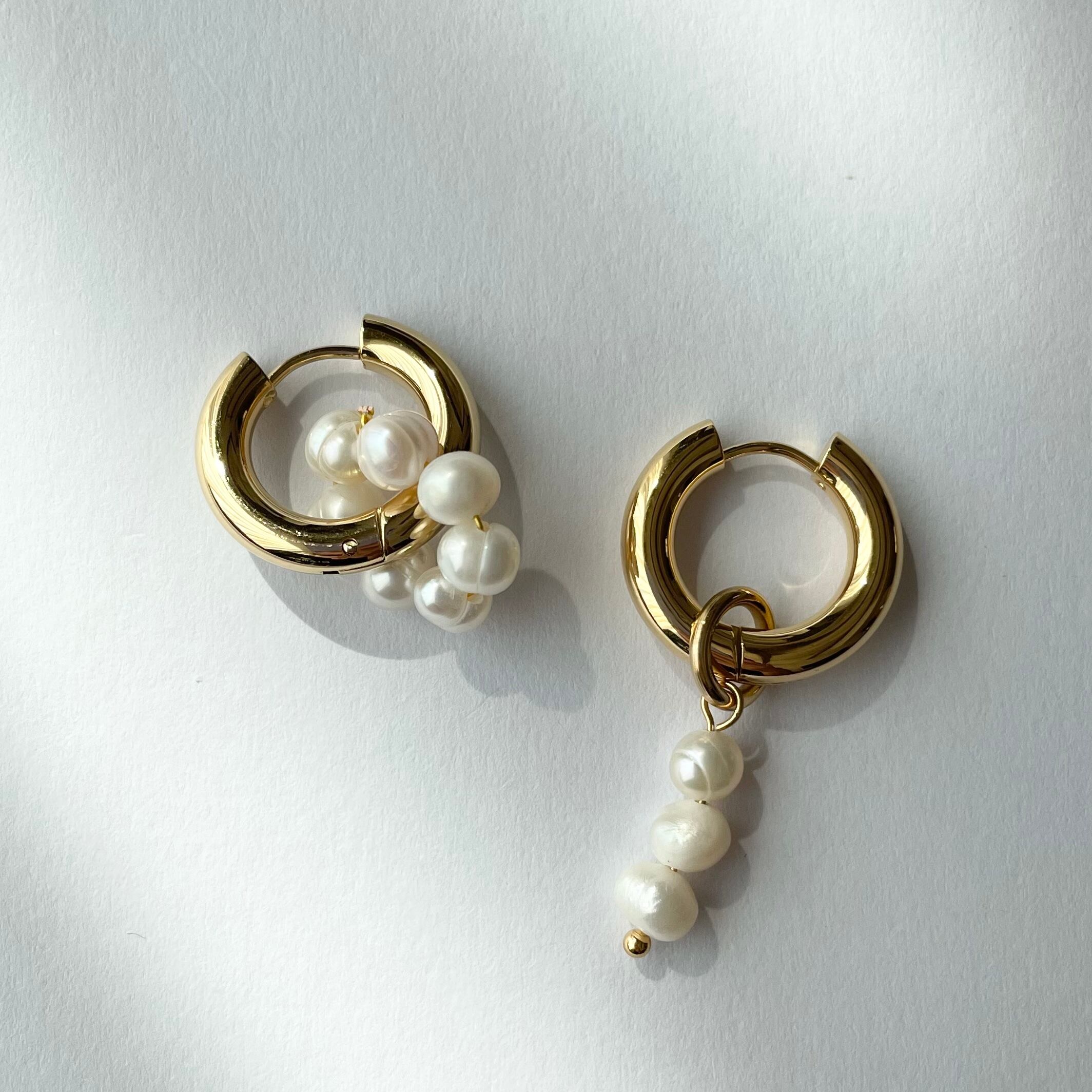 パールデザインが左右で異なるアシンメトリーピアスで、一際目を引くデザインピアス。