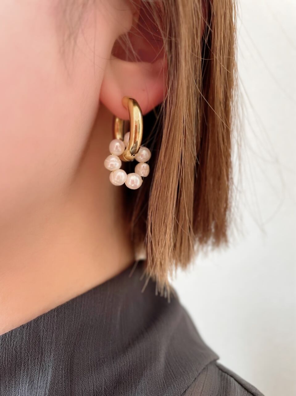 パール部分を外してシンプルなフープピアスとしてもお使いいただける2wayピアスとなっています