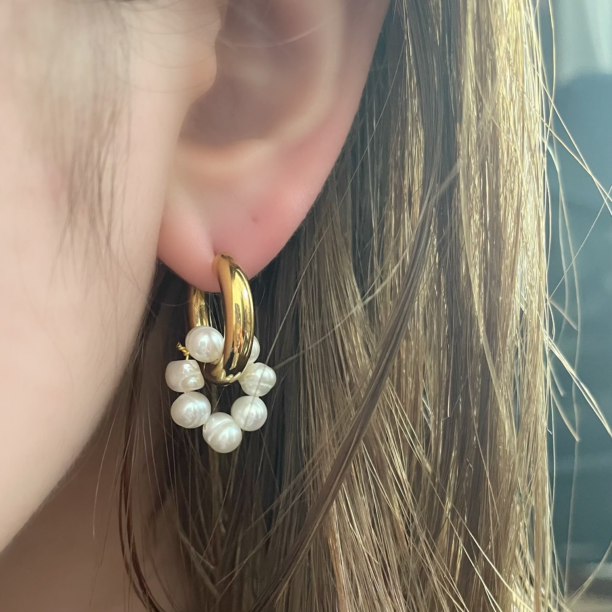 天然淡水パールを使用したチャンキーピアス