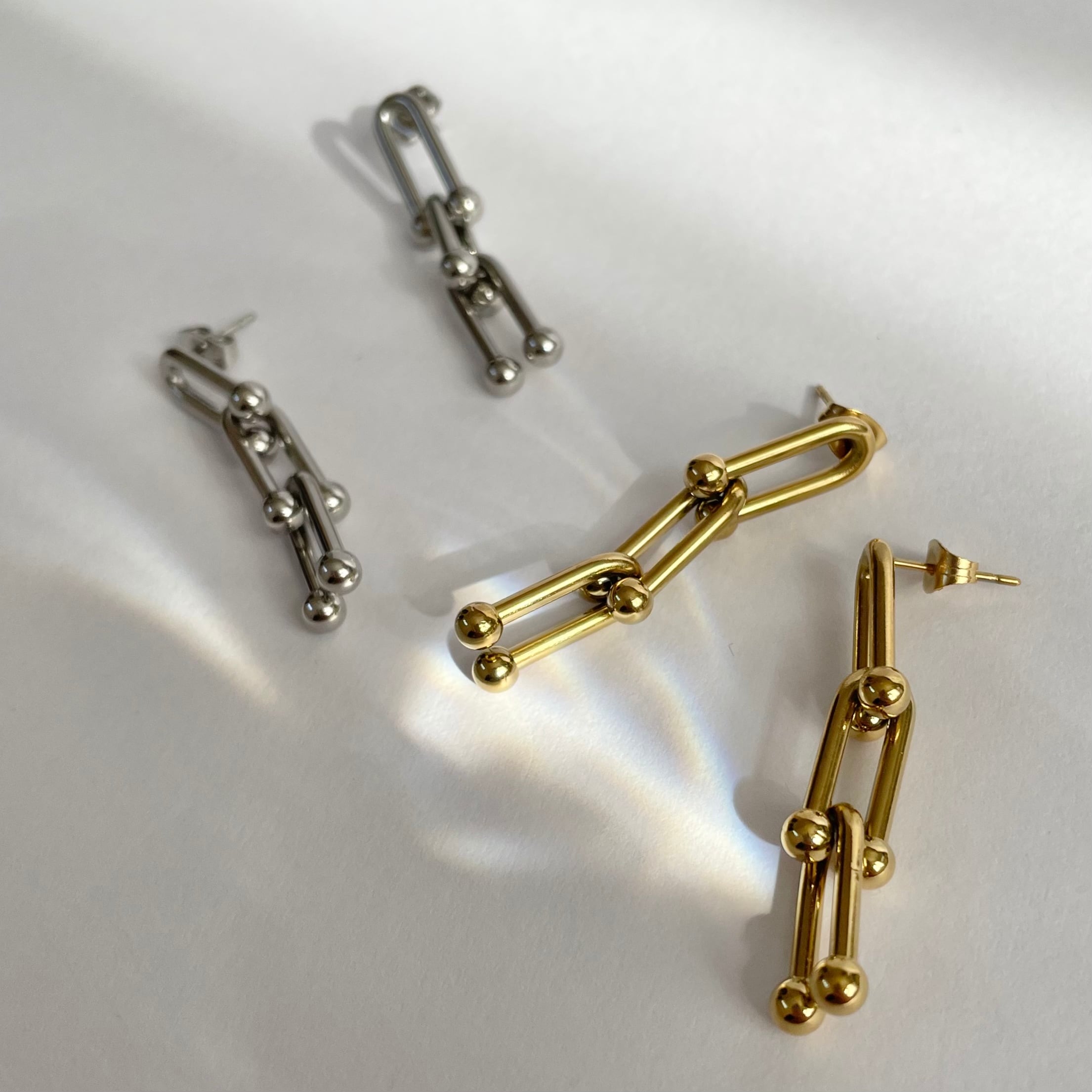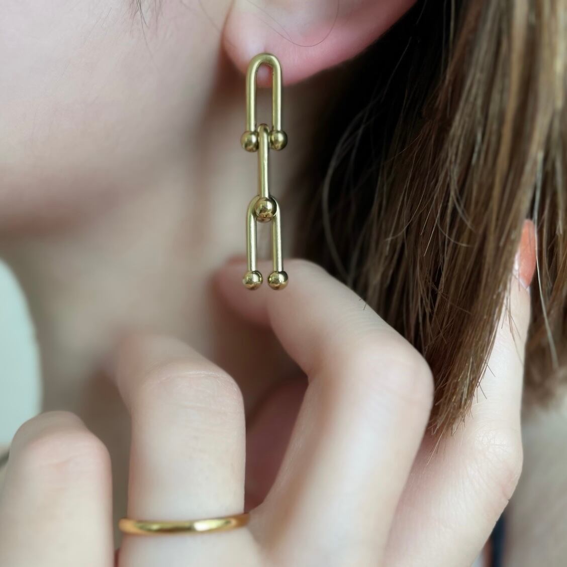 揺れ動くたびに存在感のあるロングピアス