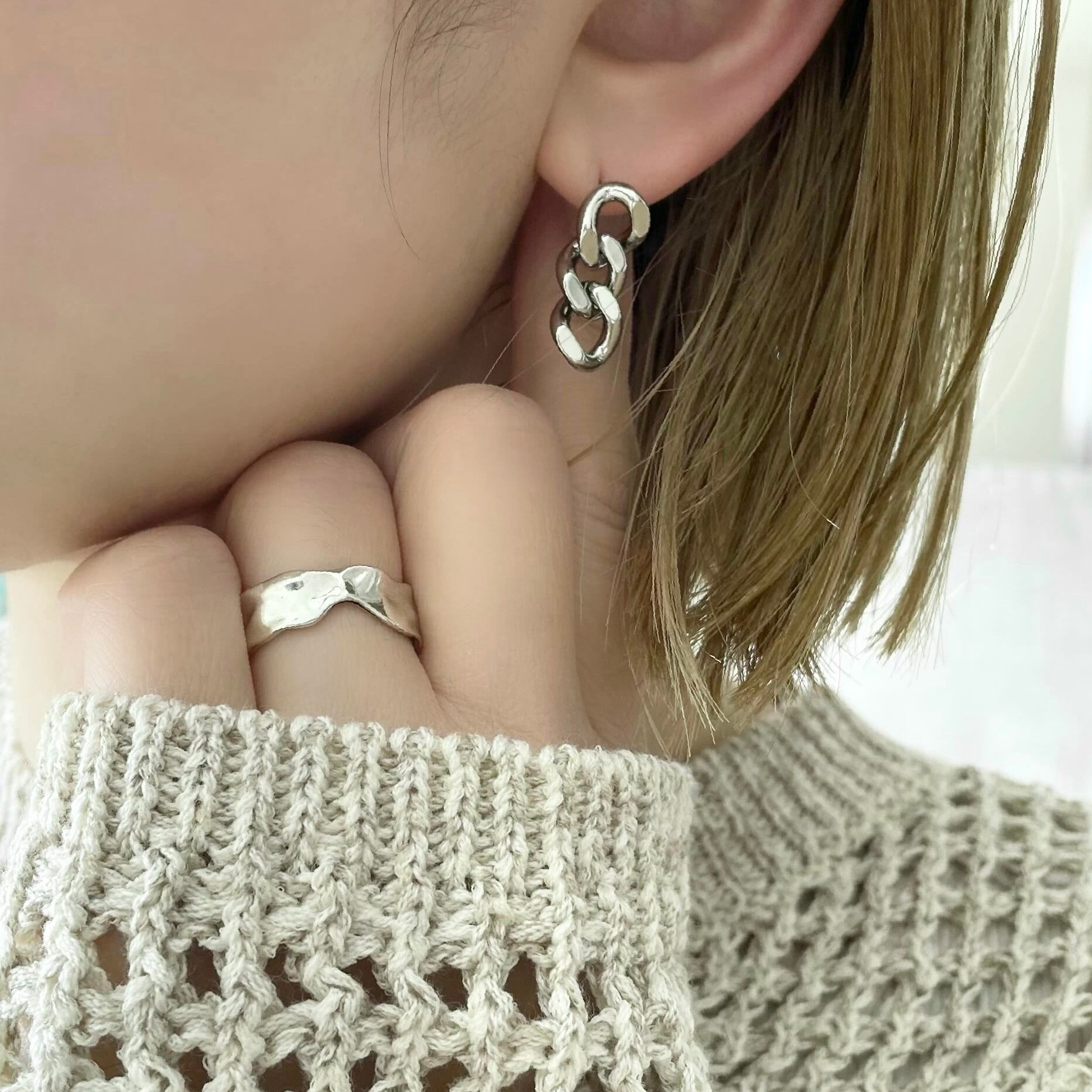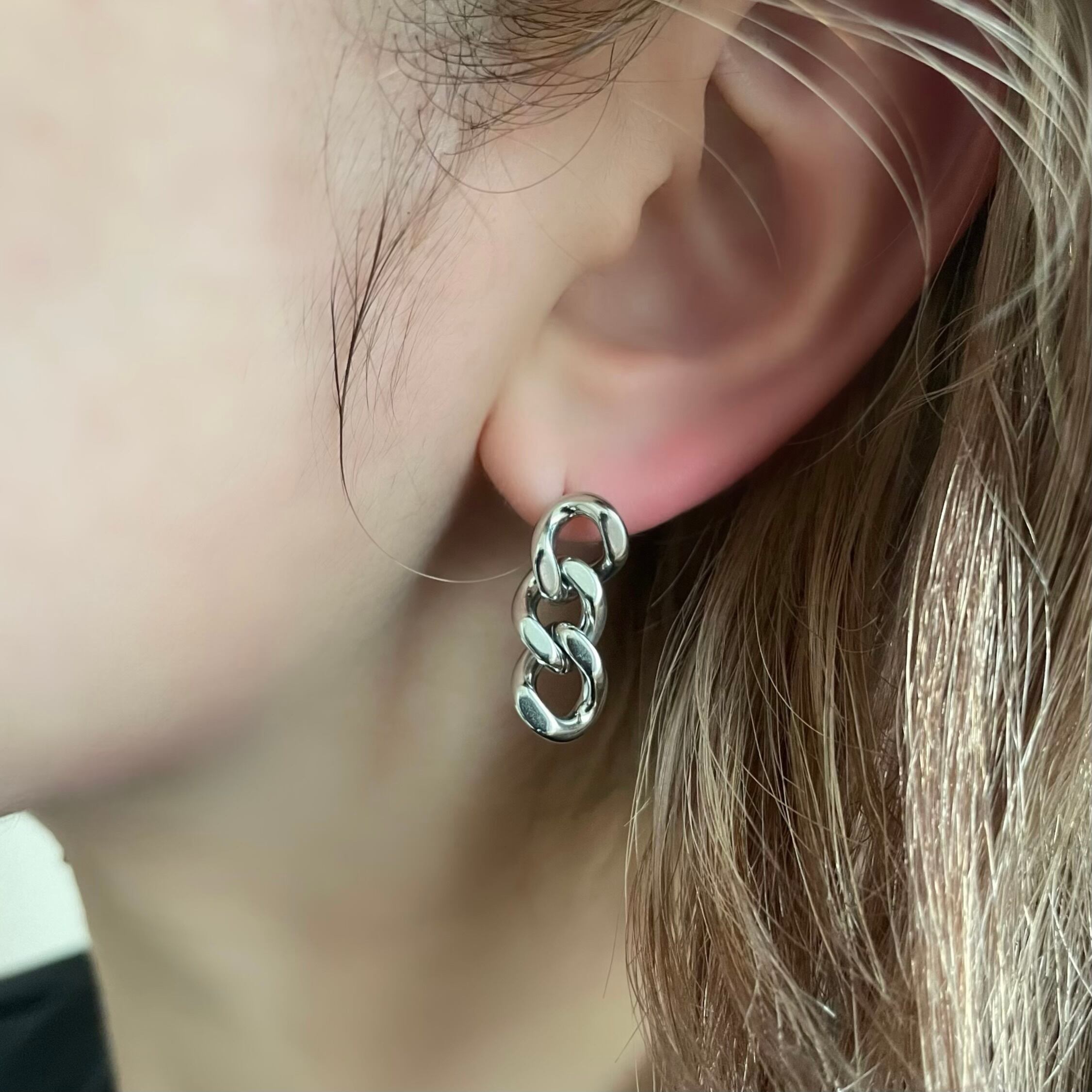 鎖のようなクールな印象のチェーンピアス