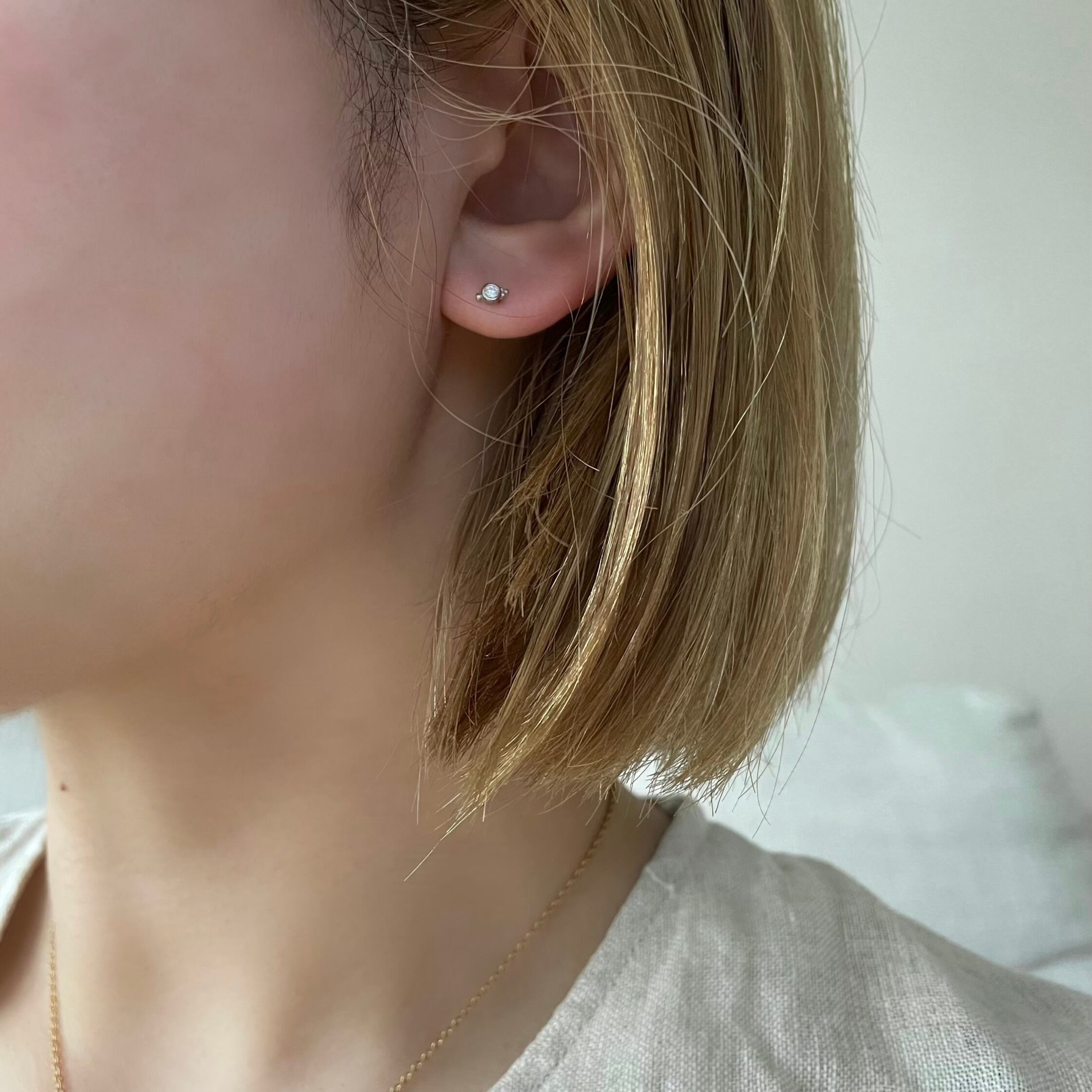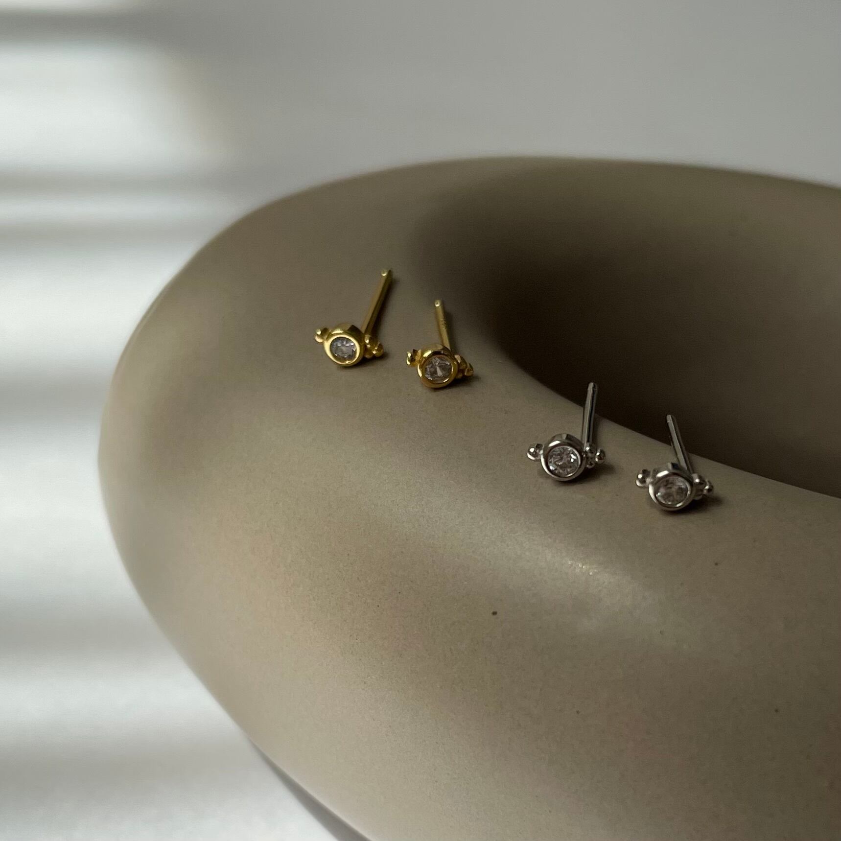 上品な輝きの極小ジルコニアピアス