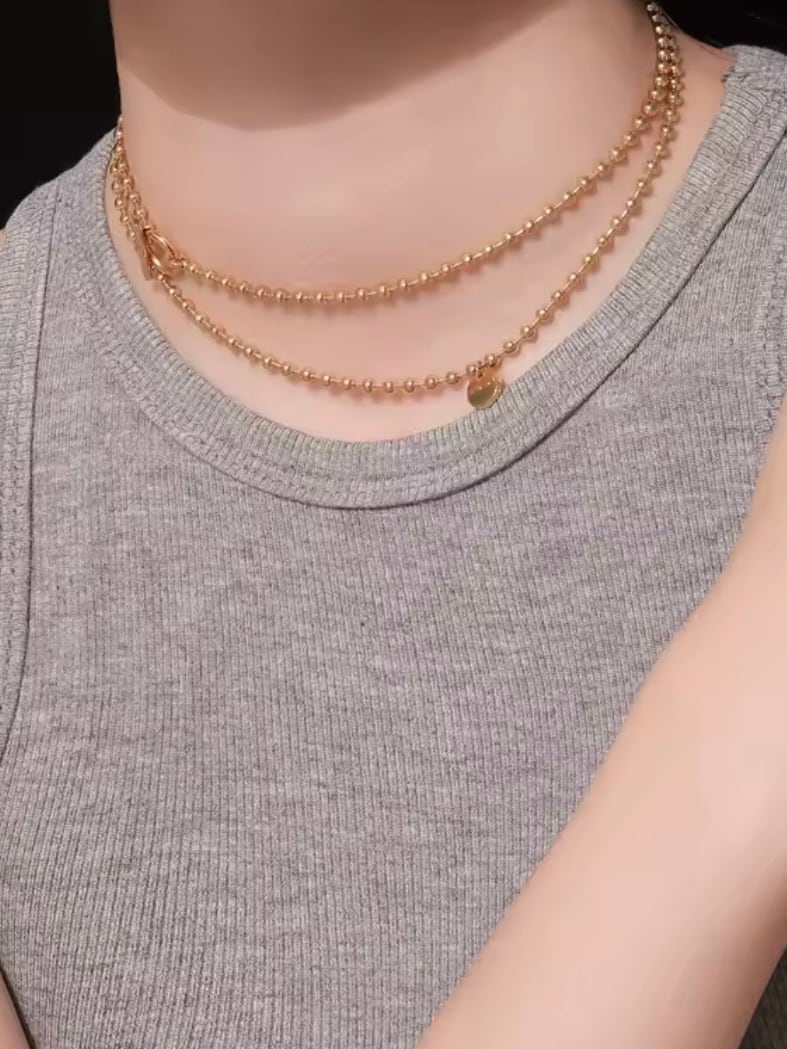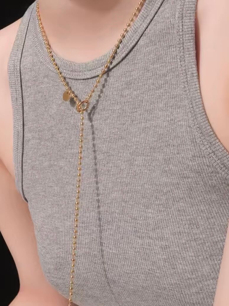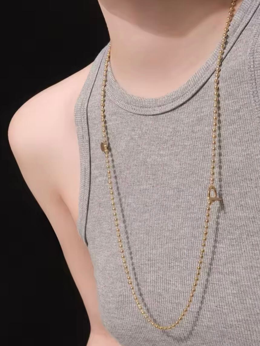 程よい太さのシンプルなボールチェーンでつけるだけでコーディネートが華やかになるアイテム。
