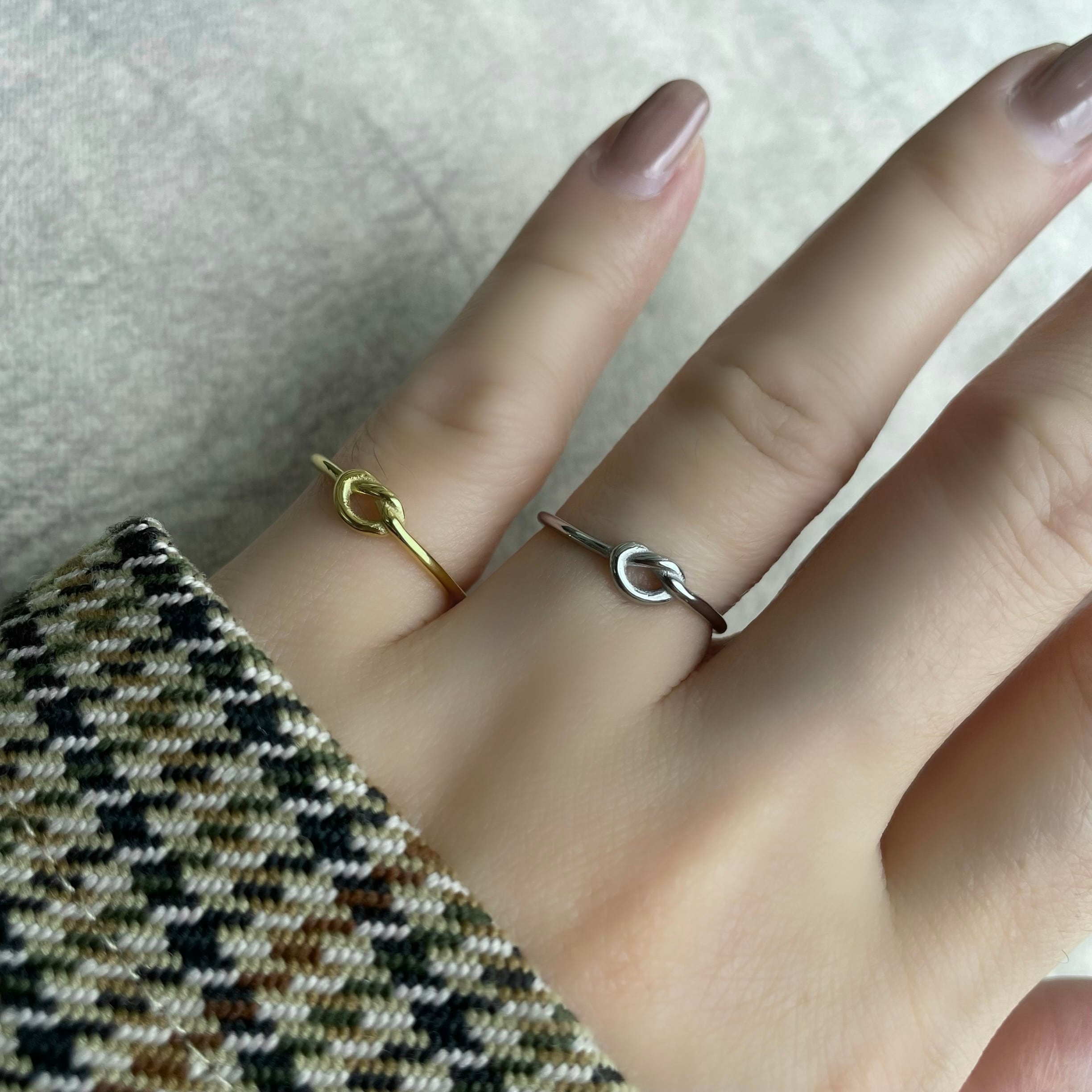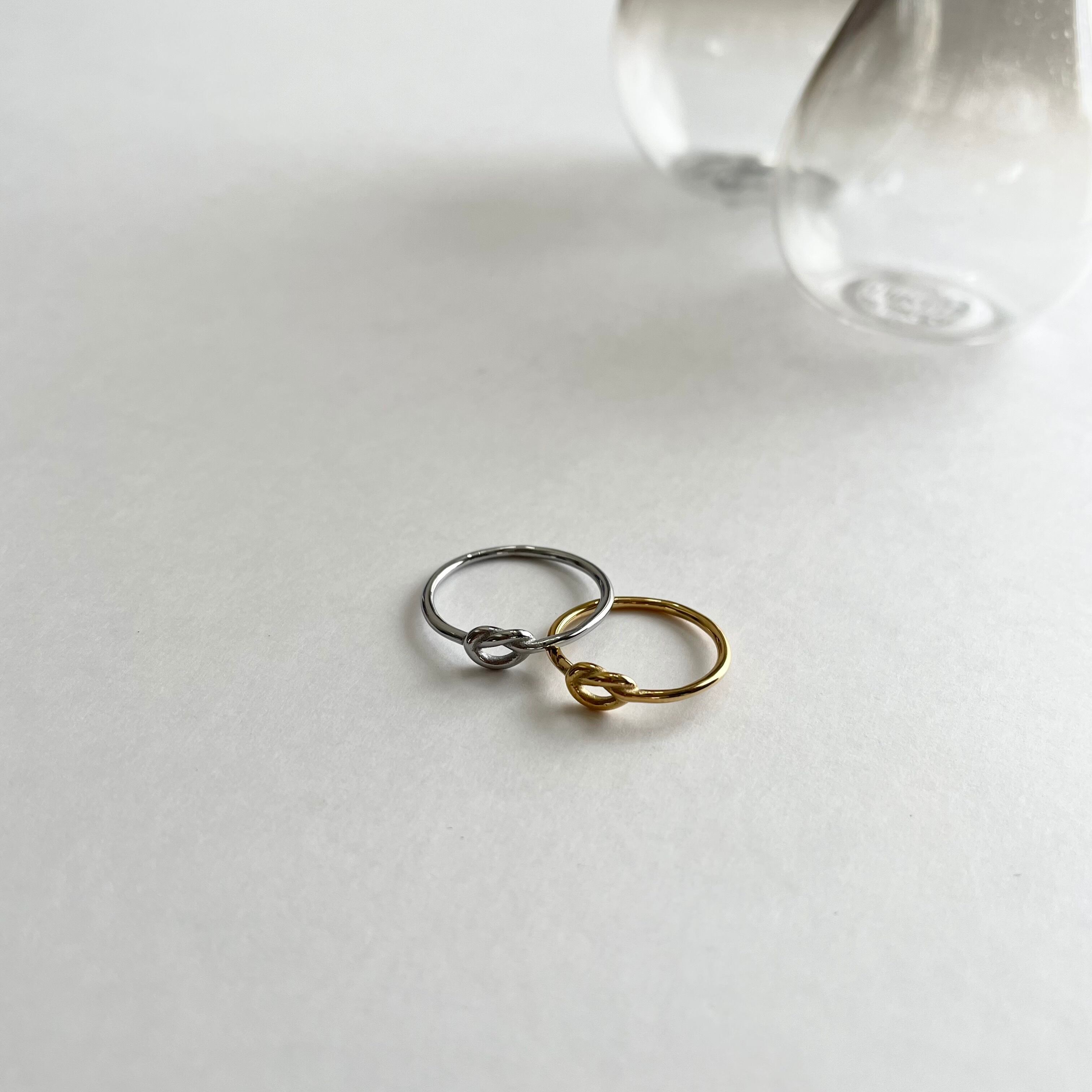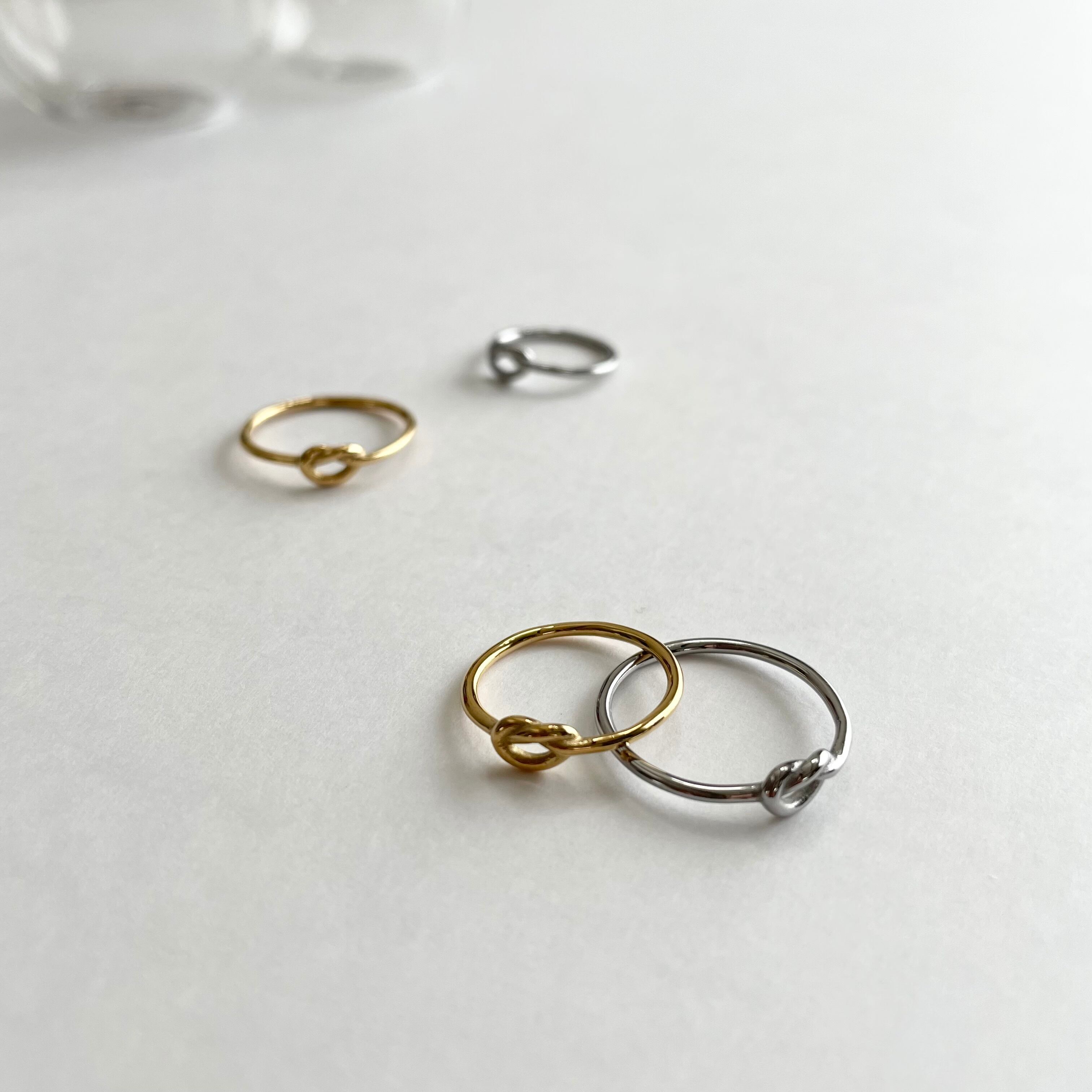 極細の結び目デザインのステンレスリング